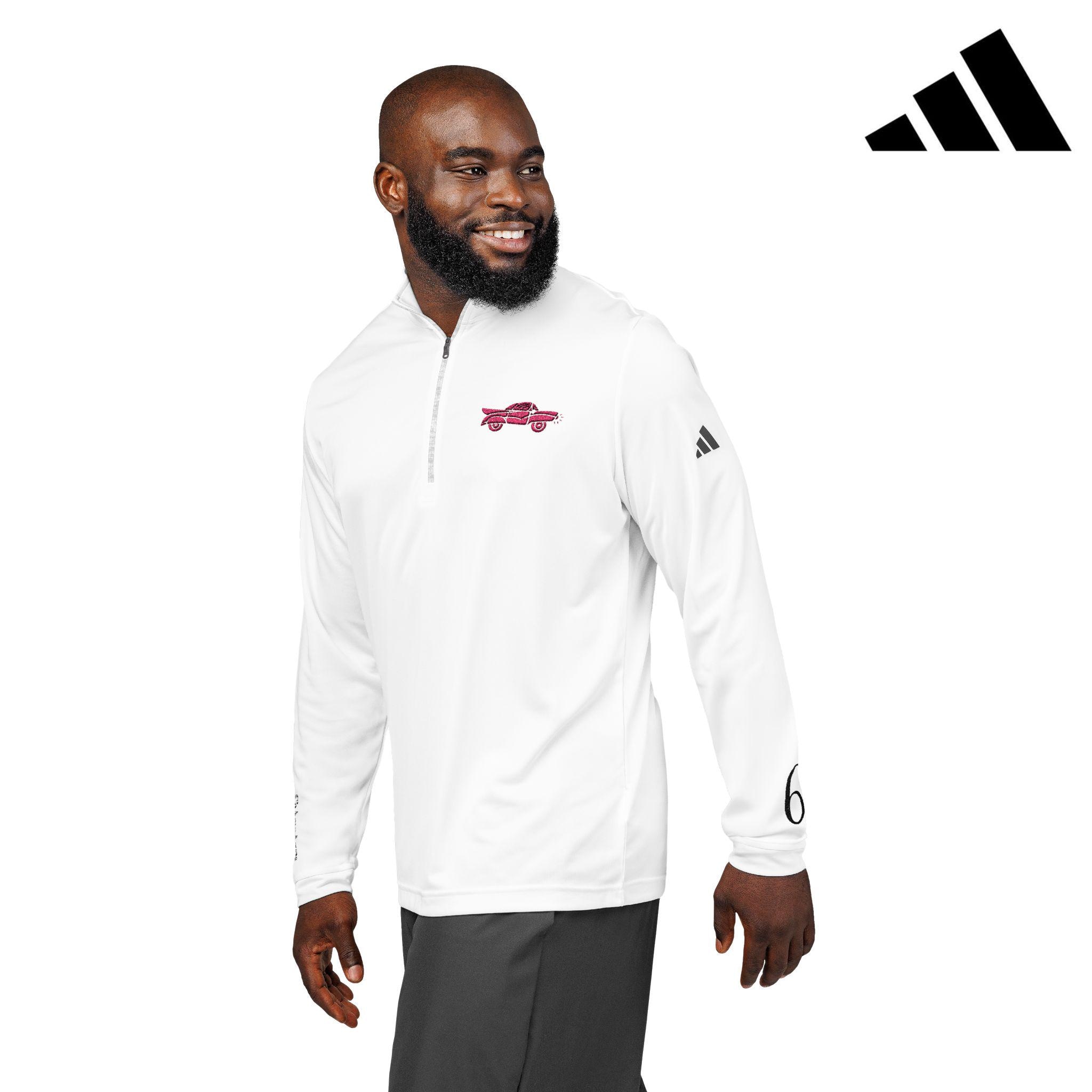Lightweight and breathable, this quarter-zip pullover brings sporty polish to everyday wear. The relaxed silhouette and self-mock collar layer easily over tees or under jackets. A subtle embroidered emblem on the chest adds hand-finished detail while the contrast adidas mark on the sleeve nods to athletic heritage. Engineered with a hydrophilic finish and UPF 50+ protection, the fabric wicks moisture and shields skin during sunny outings. Made from certified recycled fibers, it balances performance with a lower environmental footprint. Wear it on morning runs, weekend rounds of golf, or slow afternoons by the water — it feels like the go-to layer that keeps you cool, composed, and moving.