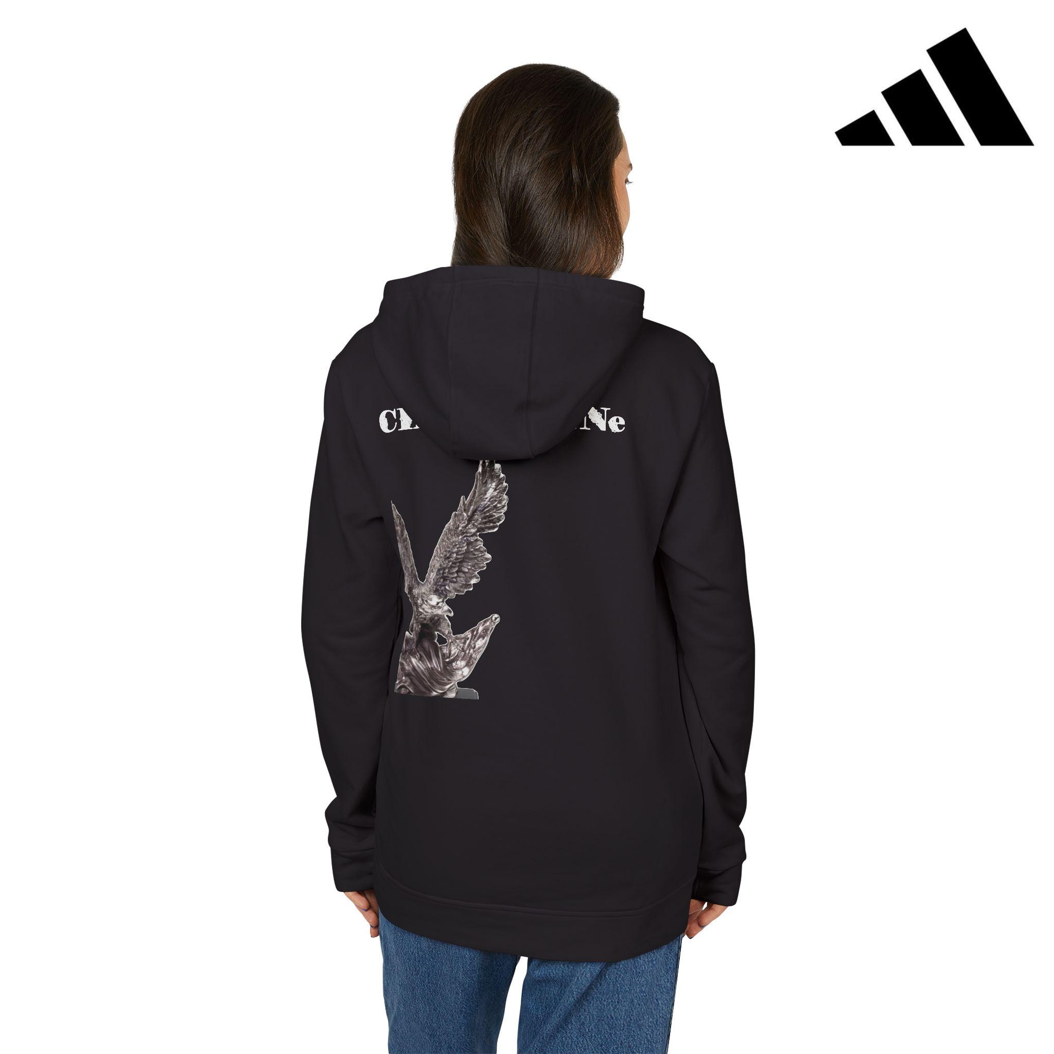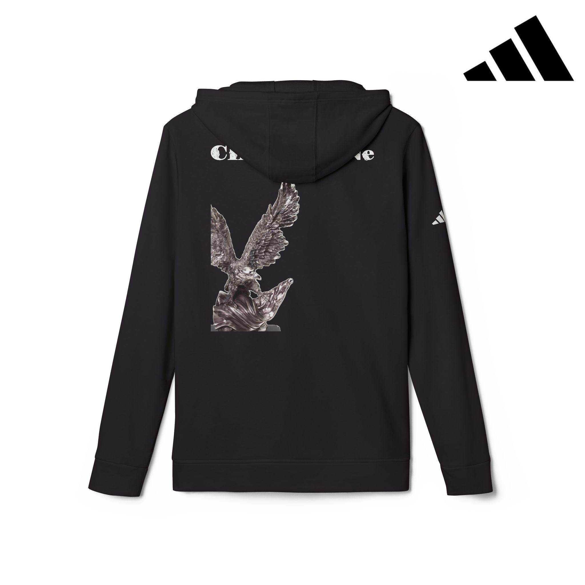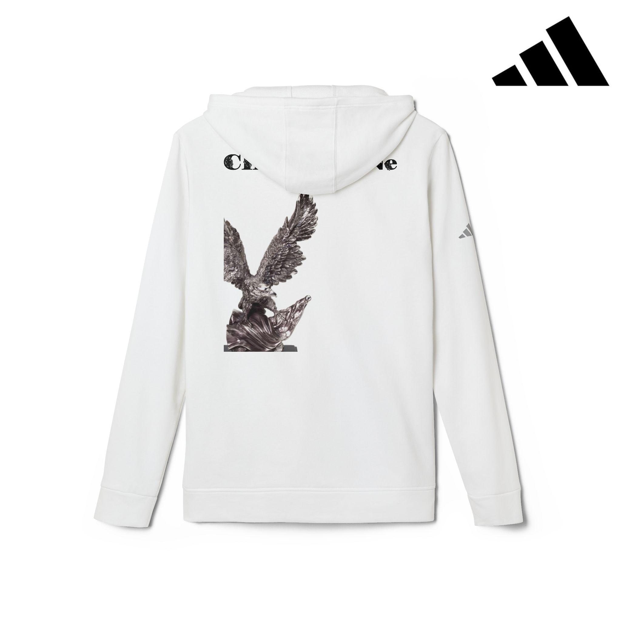 This clean, contemporary hoodie blends street-ready performance with subtle artful details. The soft, midweight fleece feels substantial without weighing you down, while the adjustable hood and roomy kangaroo pocket add everyday comfort. A monochrome sculptural eagle print on the back gives the piece a quiet, powerful presence — the kind of graphic that reads as an expression, not a slogan. Small adidas branding keeps the look authentic and wearable in city streets, studios, or on slow weekend mornings. Wear it layered over a tee or under a jacket; it moves with you and settles into your routine.